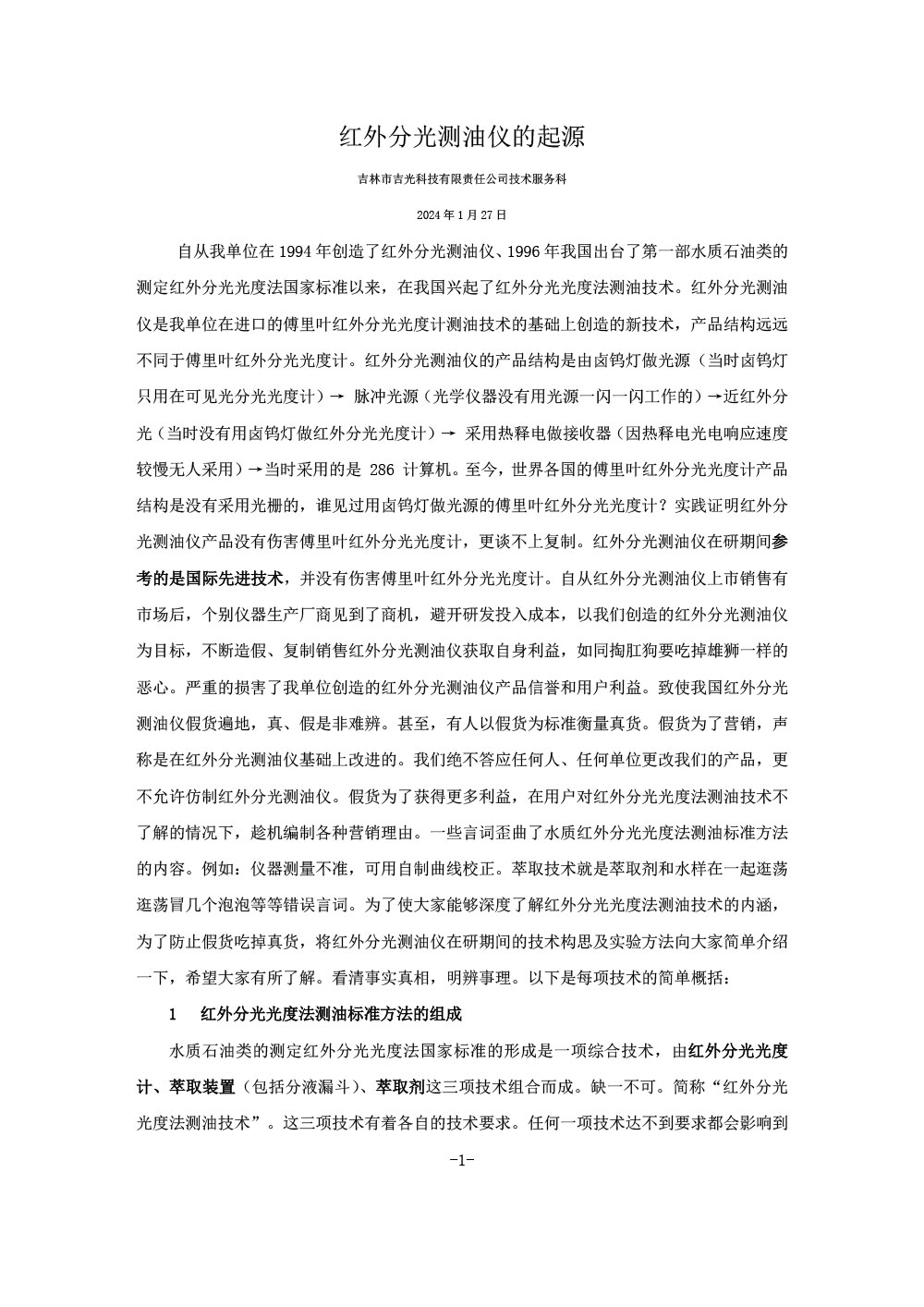 关于《四氯乙烯红外分光测油技术问题》的解释(内部资料)