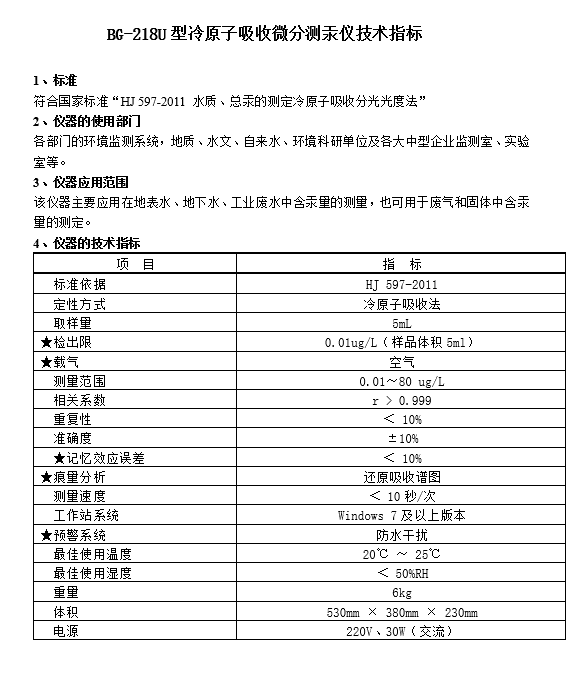 全自动冷原子吸收微分测汞仪